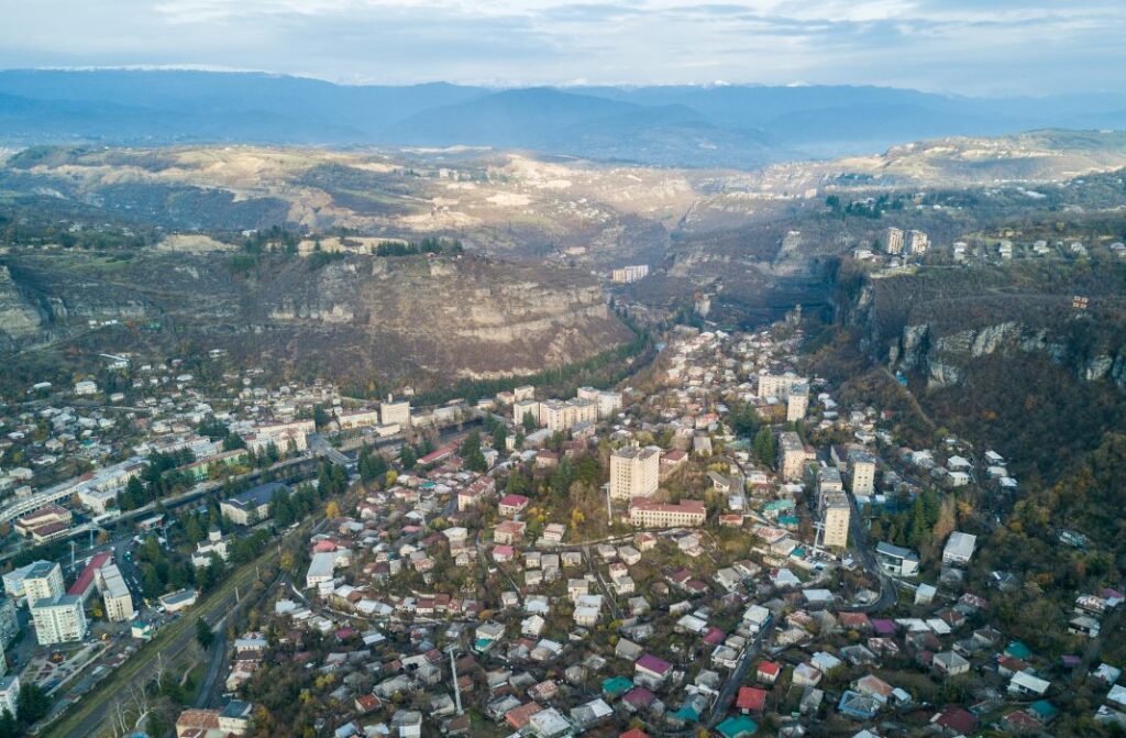 Грузинский город Чиатура расположен в узком ущелье реки Квирила на скалистой местности на высоте 340-500 метров над уровнем моря. В некоторые районы городка можно попасть только лишь при помощи воздушно-канатной дороги, общая длина которой составляет более шести километров.